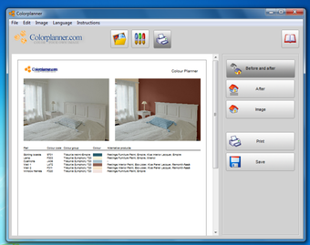Depois de usar o Color Planner para criar um cenário ou cenários que você gosta, você pode salvar as combinações ou imprimi-las. Há também algumas opções agradáveis para impressão antes e depois de imagens para comparação. No menu Instruções, você também encontrará uma grande quantidade de solução de problemas e explicações.